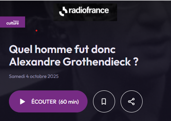 The distinguished mathematician Alain Connes, member of the Scientific Council of the Grothendieck Institute and co-author of the preface to the recent volume “Les Années cachées” – which collects Alexander Grothendieck’s unpublished correspondence with Christian Escriva – has been the guest on the radio programme “La Conversation scientifique”, hosted by Étienne Klein on France Culture.